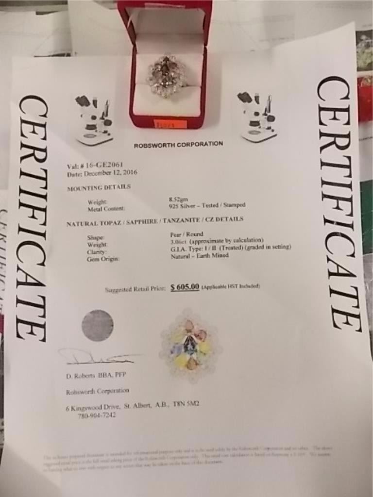 RING - 3.06 TCW CLUSTER OF TOPAZ, SAPPHIRE, TANSANITE & CZ IN STERLING SILVER SETTING - INCLUDES CERTIFICATE - RETAIL ESTIMATE $605