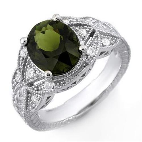 VINTAGE STYLE 3.25 ctw DIAMOND & GREEN TOURMALINE LADIES RING IN 10KT WHITE GOLD