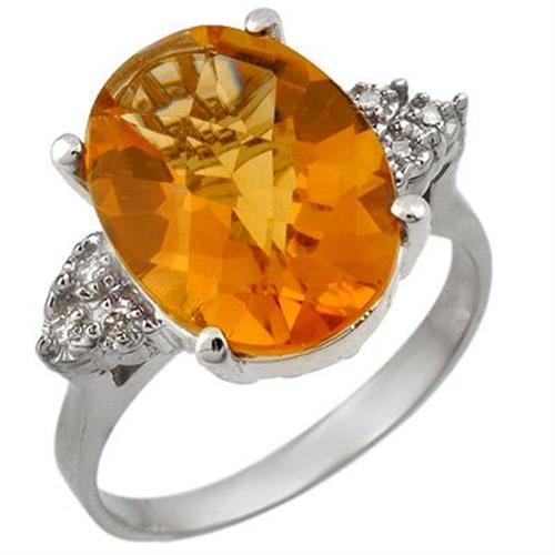 the golden hues of citrine and further enhanced by a hint of sparkling diamonds on either side of the center stone.<BR><BR>In ancient times, this birthstone of November was carried as protection again snake venom