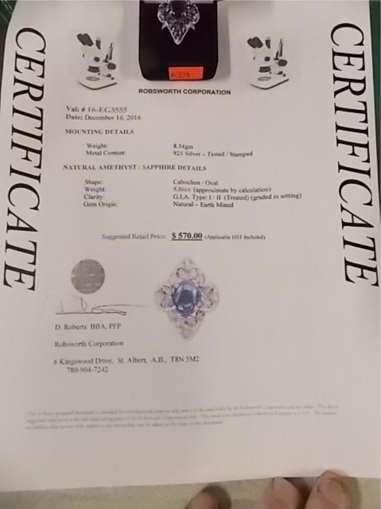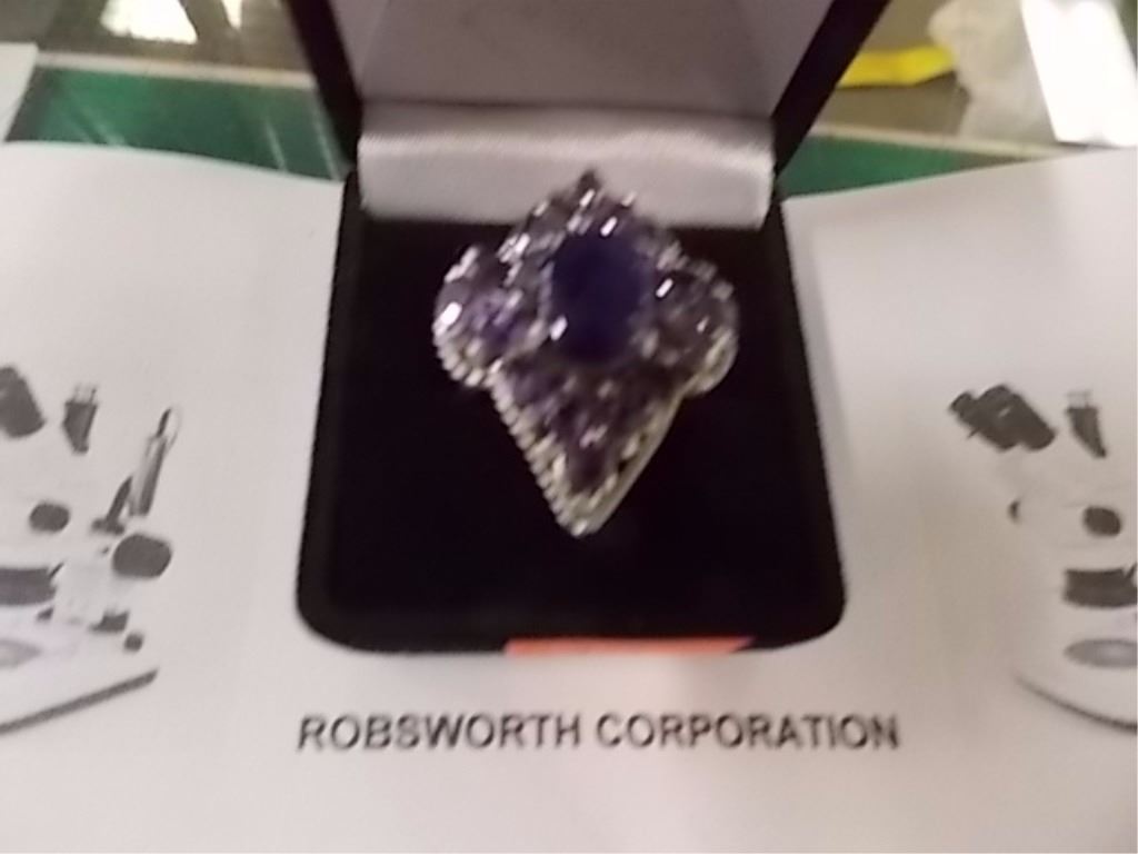 RING - 5.86 TCW - CLUSTER OF SAPPHIRE & AMETHYST IN STERLING SILVER SETTING - INCLUDES CERTIFICATE - RETAIL ESTIMATE $570