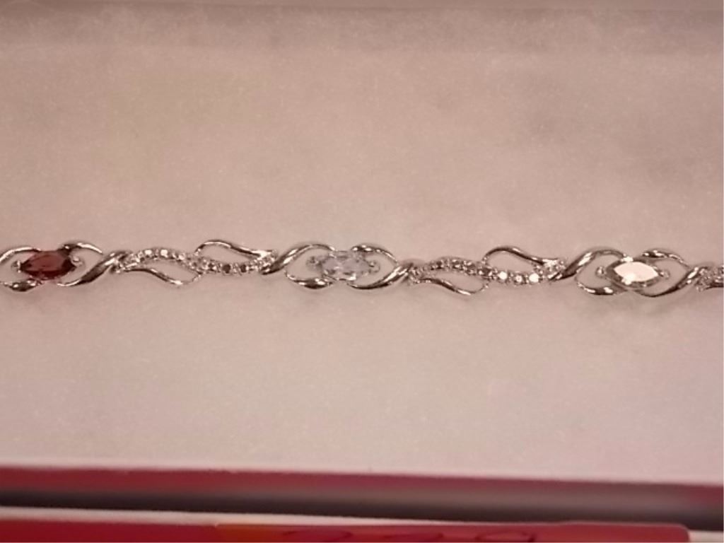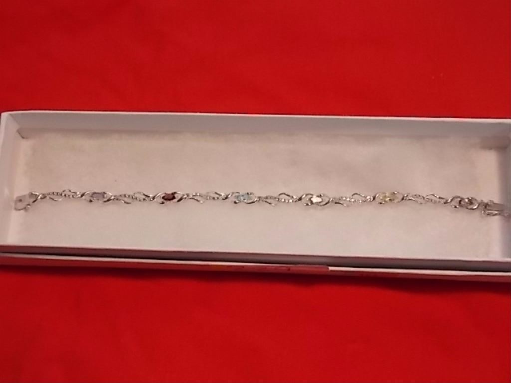 RING - 6 MARQUIS FACETED MULTI GEMSTONES & DIAMOND IN STERLING SILVER SETTING - RETAIL ESTIMATE $375