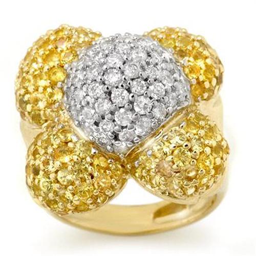 Bask in the brilliance of a jeweled treasure as radiant as you are in this diamond and sapphire ring in yellow gold.Four domes of pave-set yellow sapphire frame the absolute stunning center dome filled with fiery diamonds.<BR><BR>Known as a pledge of trust and loyalty, this September birthstone has long been a popular choice for engagement rings.