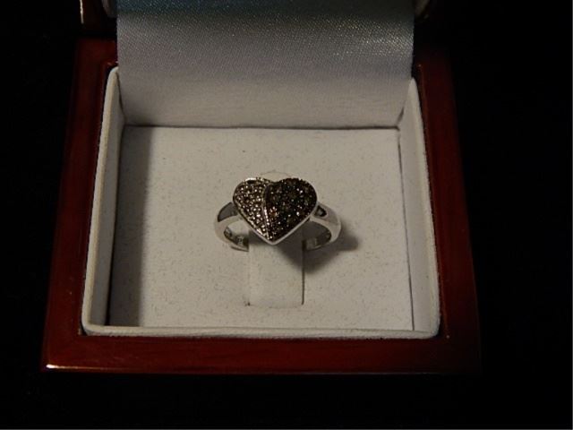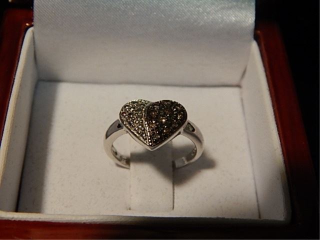 RING - .925 STARLING SILVER WITH 11ROUND CHAMPAGNE YELLOW DIAMONDS - HEART DESIGN - INCLUDES CERTIFICATE - $475