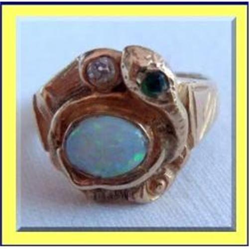 <tr><td>Title:RING ART NOUVEAU 14K GOLD OPAL DIAMOND SNAKE </td></tr>
