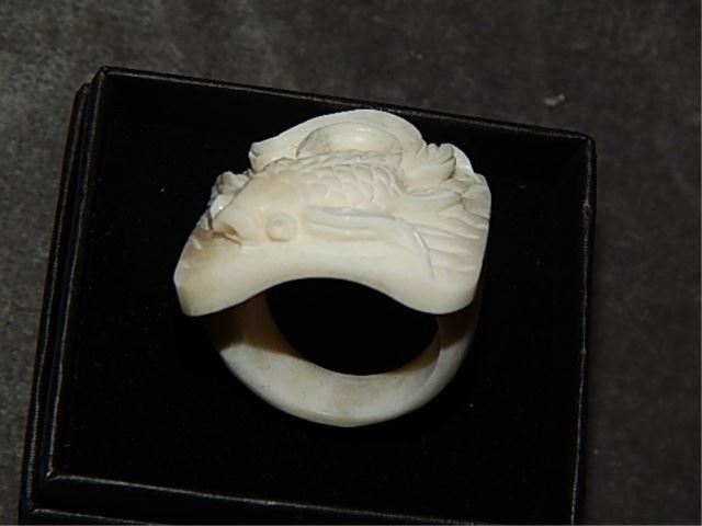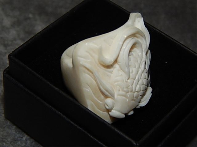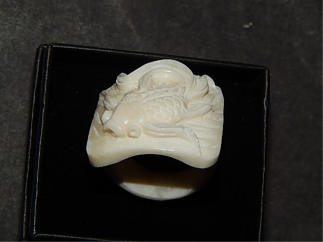 RING - CUSTOM DESIGNED AND HAND CRAFTED - MADE FROM BUFFALO BONE - KOI DESIGN