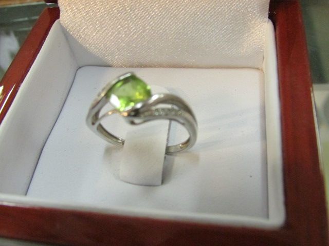 RING - GREEN PERIDOT - SILVER - WITH 10 DIAMOND - CERTIFICATE - #500