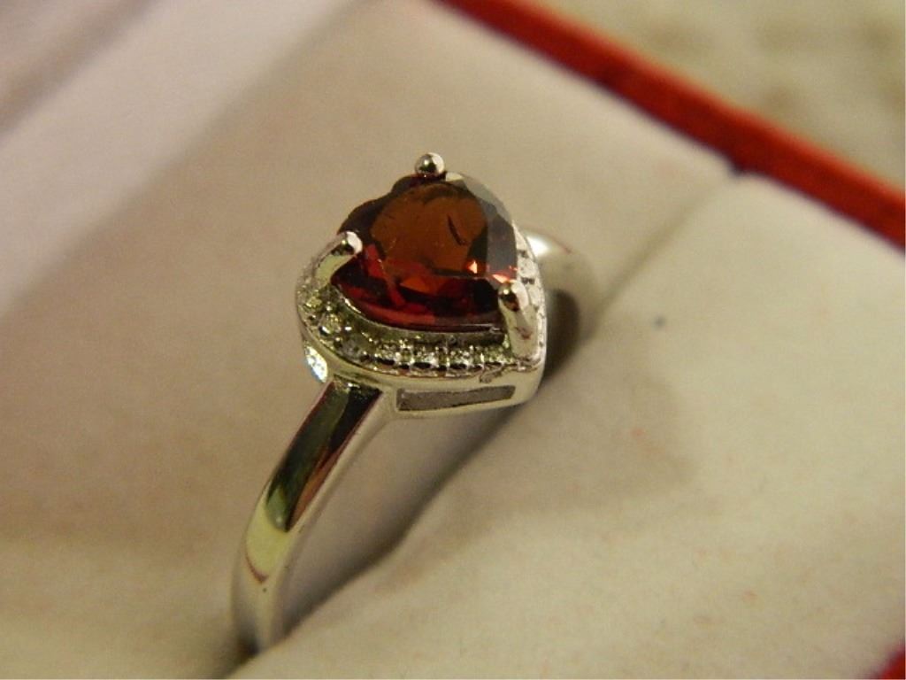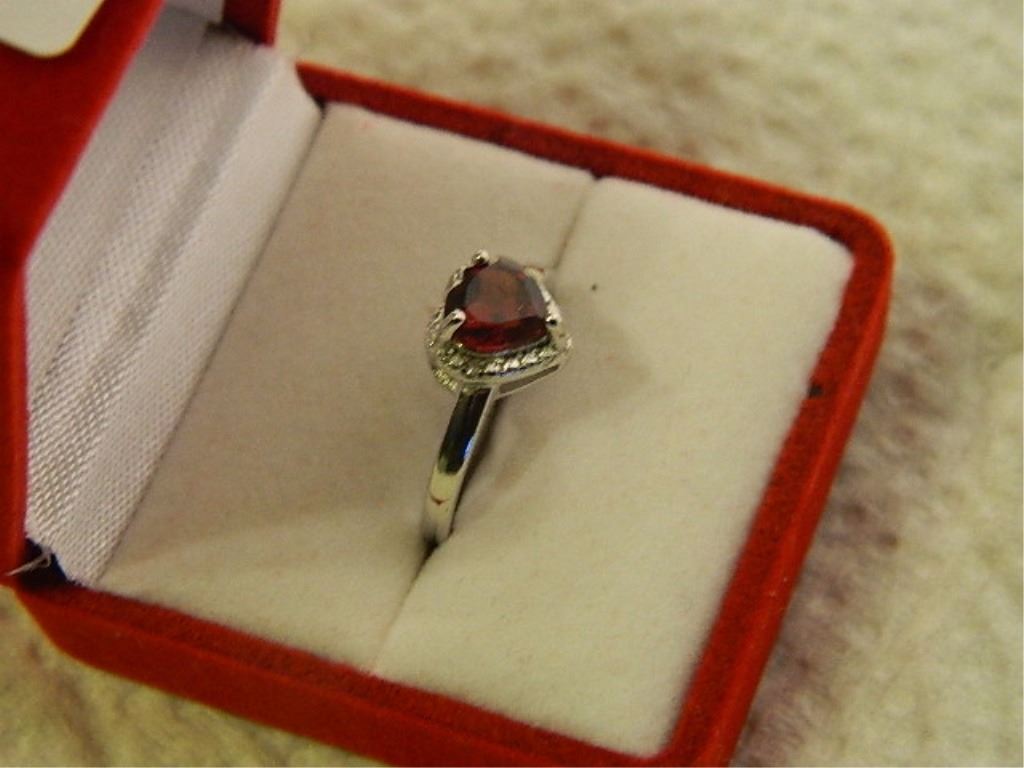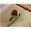 RING - HEART FACETTED GARNET & 2 DIAMONDS IN STERLING SILVER SETTING - RETAIL ESTIMATE $375