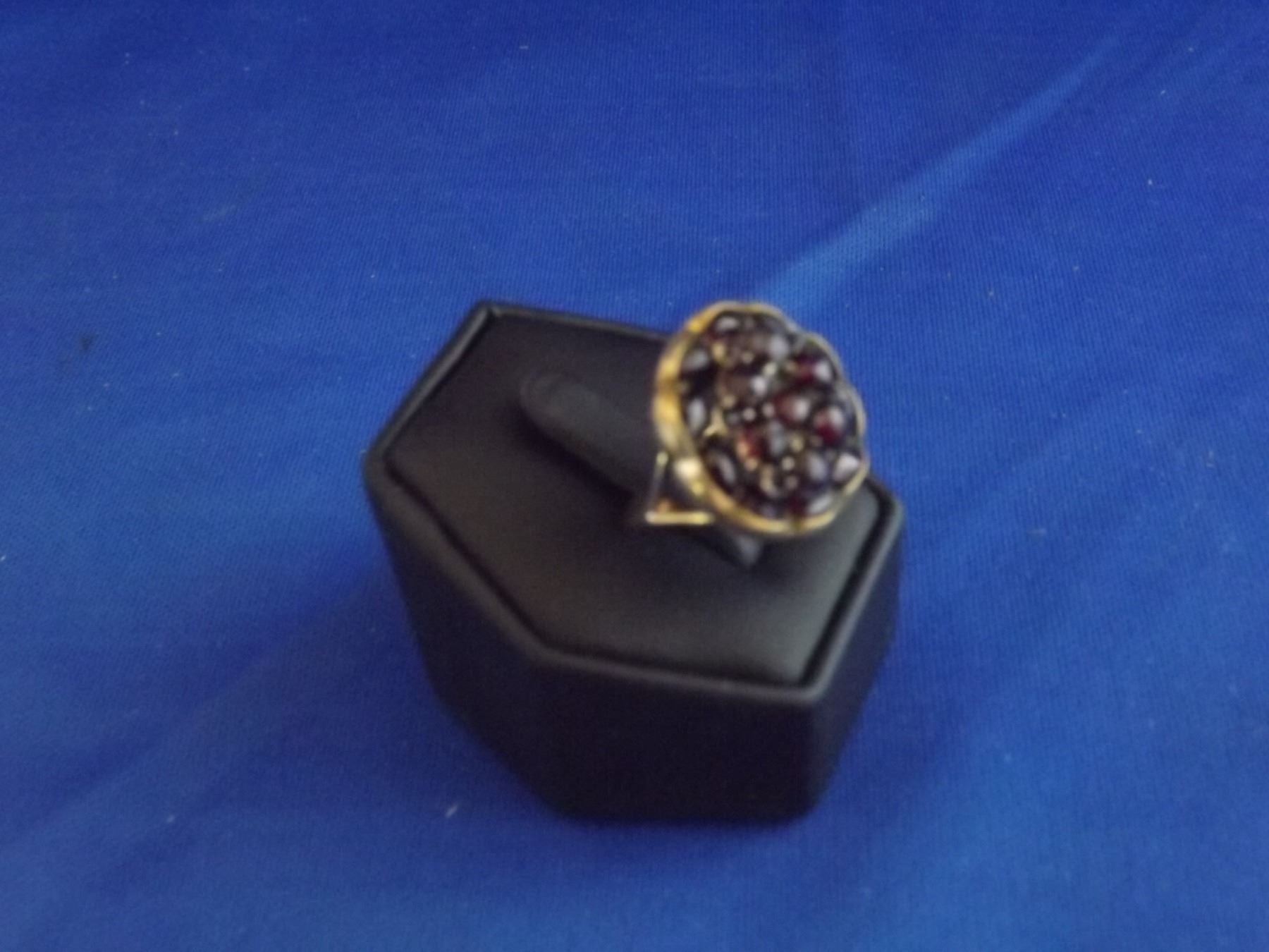 SIZE 3.25 10K 4.92 GRAMS MISSING ONE OF THE SMALL GARNETS