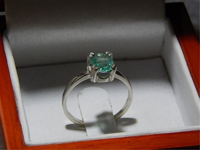 RING - LADIES SOUTH AMERICAN .87 CARAT EMERALD SOLITAIRE - INCLUDES CERTIFICATE - $750
