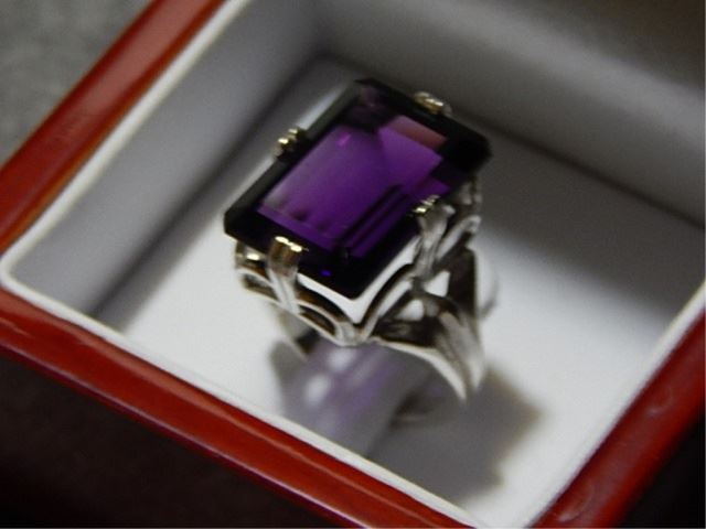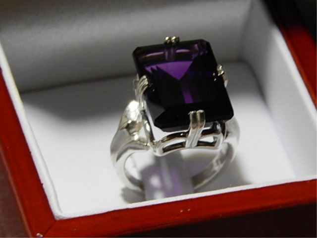 RING - LARGE 16.08 CARAT EMERALD CUT PURPLE AMETHYST - INCLUDES CERTIFICATE - $800