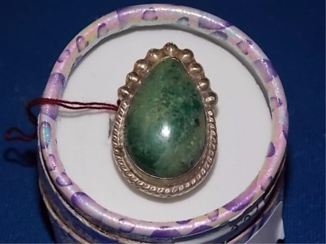 RING - LARGE GREEN TURQUOISE? IN STERLING SILVER SETTING - SZ 6
