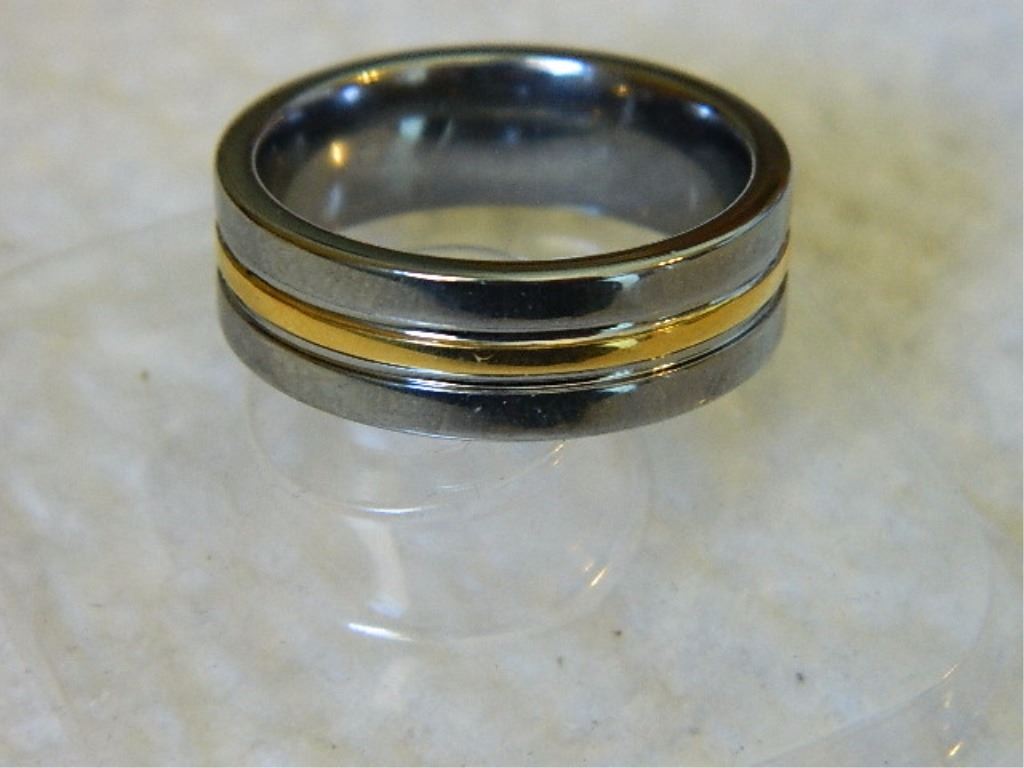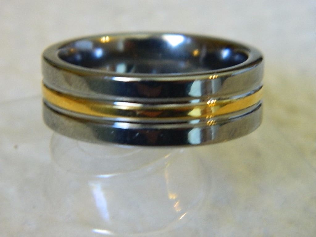 RING - MAN'S TITANIUM - WITH MIDDLE GOLD BAND RETAIL ESTIMATE $200