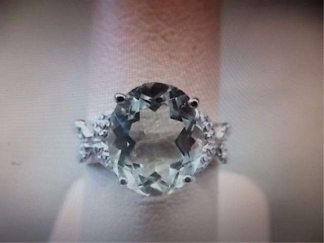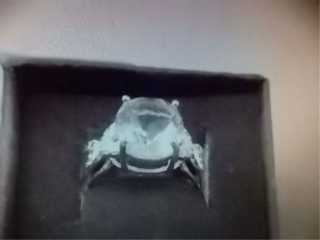 RING - OVER 3CT OVAL FACETED LIVELY GREEN/YELLOW AMETHYST & 2 ROUND FACETED DIAMONDS IN STERLING SILVER 4 CLASP DESIGNED SETTING - RETAIL ESTIMATE $425