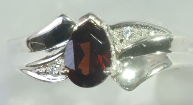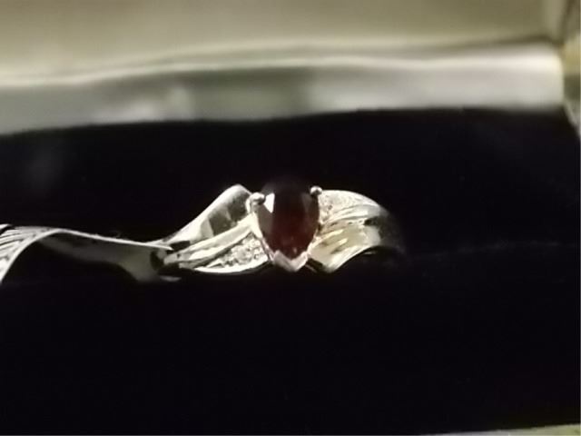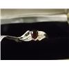 RING - PEAR FACETED GARNET WITH 2 SHOULDER GEMS IN STERLING SIILVER SETTING - RETAIL ESTIMATE $250