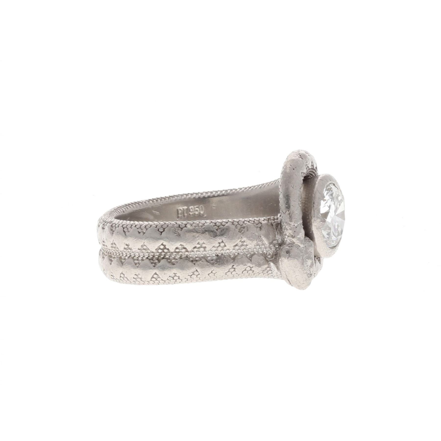 RING: Platinum snake ring, size 11; (1) round brilliant cut diamond, 8.0mm diameter = an estimated 1.90 carat, V.Good/G/VS1; 30.3 grams.