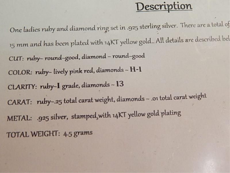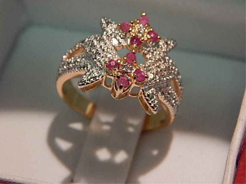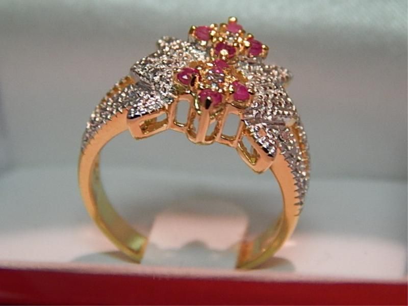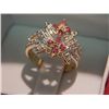 RING - RUBY & DIAMOND SILVER & GOLD COCKTAIL - NEW - includes certificate - value $450.00