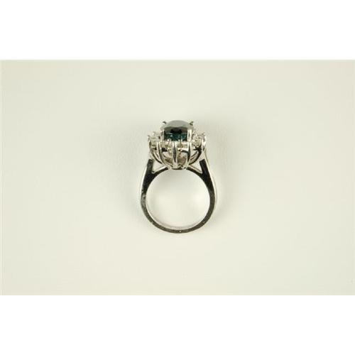 This ring came from a VERY FINE ESTATE. It is 14k White Gold and it features a VERY FINE BLUE SAPPHIRE = 4 CARATS! This IS a VERY FINE QUALITY SAPPHIRE and it is surrounded by 12 FINE QUALITY DIAMONDS = .75 CARATS! This ring is a Size 4 and it can be easily resized.