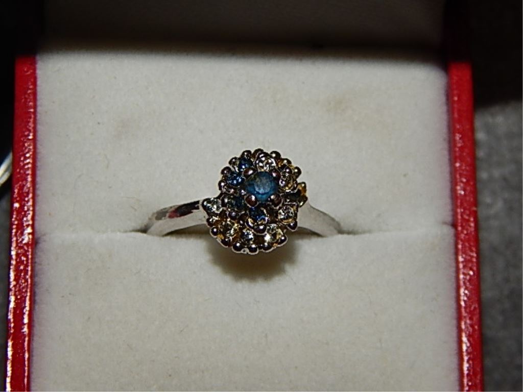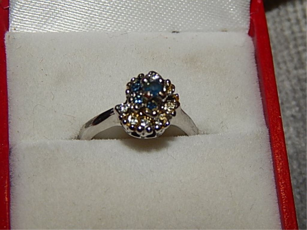 RING - SILVER TONE - CLEAR RHINESTONE AND EMERALD SPIRAL STONES