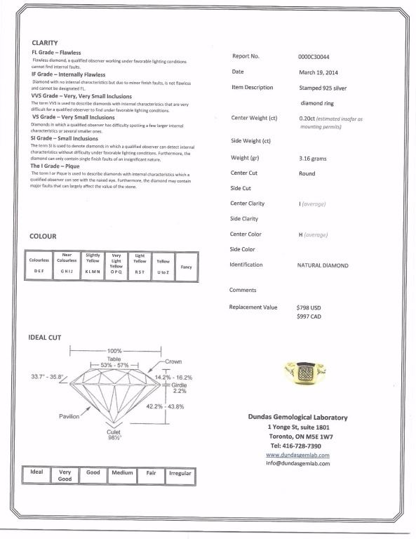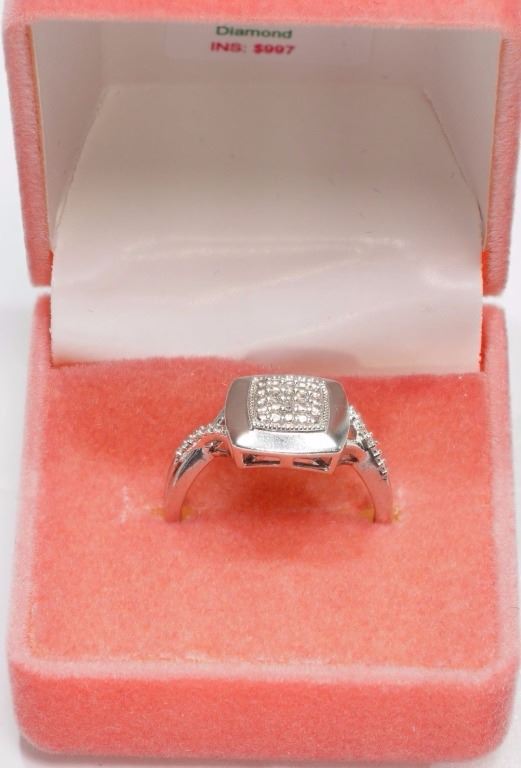 RING - STERLING SILVER DIAMOND RING (.2CT) - INSURANCE VALUE $997