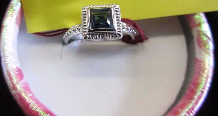 RING - STERLING SILVER & SQUARE CUT BLUE CRYSTAL IN STERLING SILVER SETTING - SZ 7 - RETAIL ESTIMATE $100