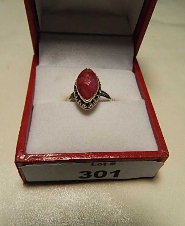 RING - STERLING SILVER WITH BLOOD RED STONE