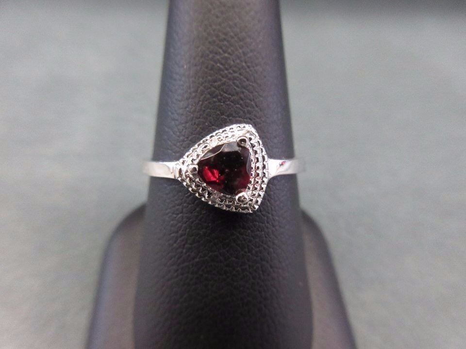 RING - TRILLION FACETED GARNET & DIAMOND IN STERLING SILVER SETTING - INCLUDES PLATINUM FINISH - RETAIL ESTIMATE $250