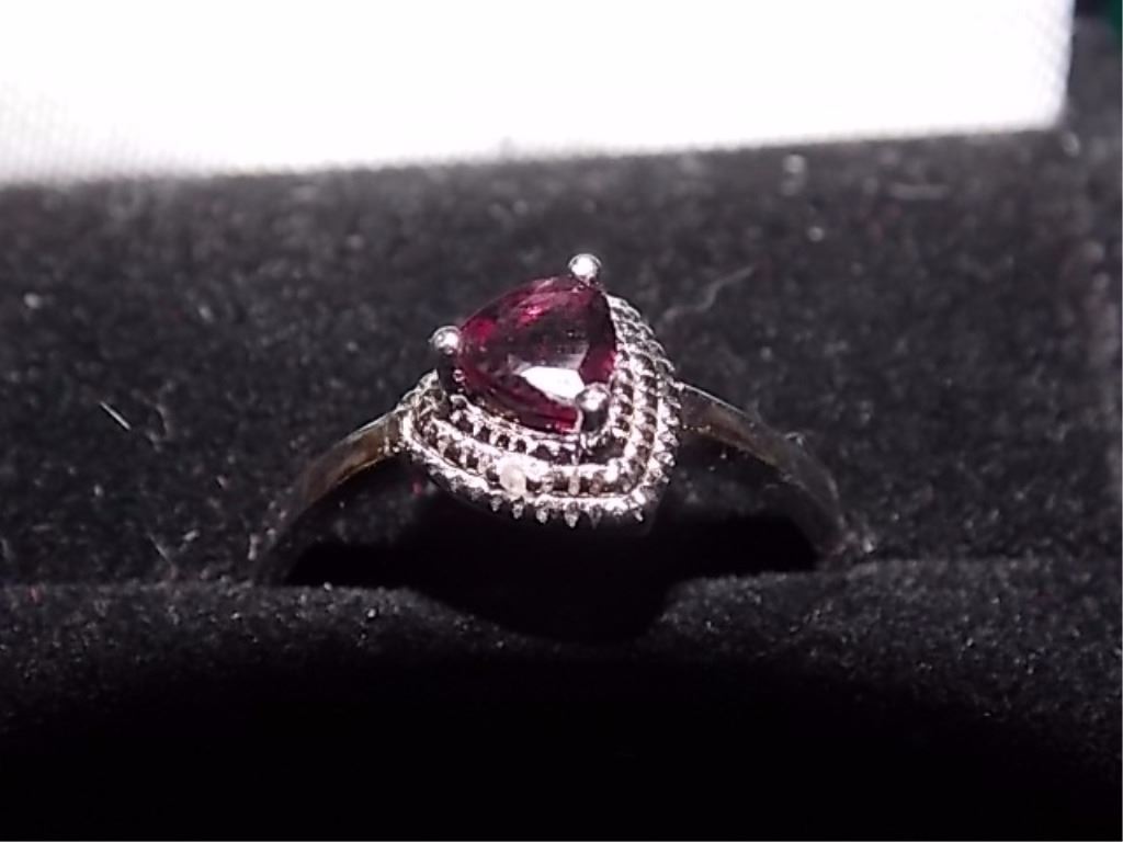RING - TRILLION FACETED GARNET & DIAMOND IN STERLING SILVER SETTING - INCLUDES PLATINUM FINISH - RETAIL ESTIMATE $250