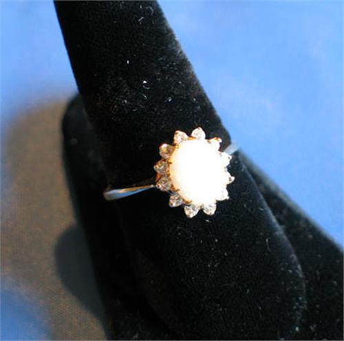 RING W/OPAL CENTER STONE SURROUNDED BY DIAMONDS (SIZE 10)