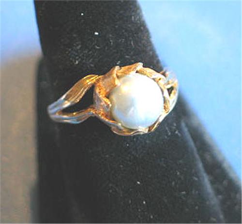 RING W/PEARL, 14k (7-3/4)