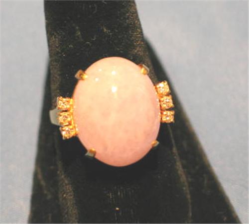 RING W/PINKISH CENTER STONE SURROUNDED BY (6) DIAMONDS(.03ea),14kyg (SIZE 9-3/4)