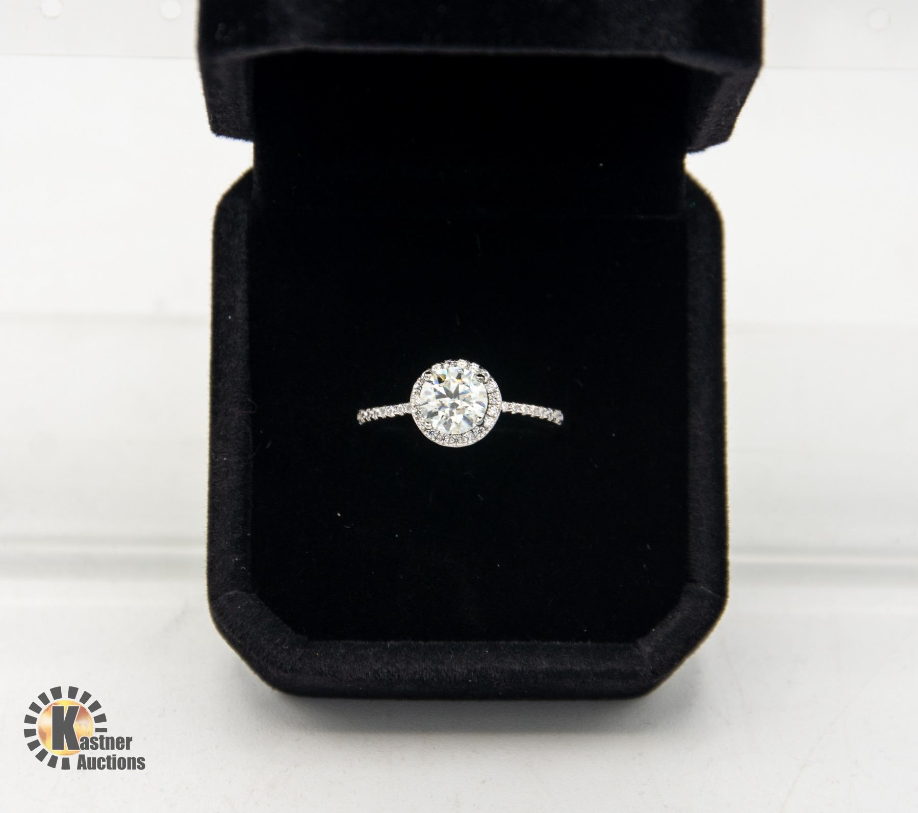 APPROX. 1.00 CARAT WITH HALO SURROUNDING CENTER AND MORE DOWN THE SHANK FOR A TOTAL 35 CUBIC ZIRCONIUM RING SIZE ADJUSTABLE **ALL ITEMS MUST BE REMOVED BY 5PM SATURDAY, FEBRUARY 24TH 2024. ALL REMAINING ITEMS WILL BE SUBJECT TO A $6.00 PER DAY STORAGE CHARGE. ANY ITEMS REMAINING AFTER MONDAY, MARCH 11TH, 2023 WILL BE CONSIDERED FORFEITED. NO REFUNDS WILL BE ISSUED FOR FORFEITED ITEMS. TO SCHEDULE A PICK UP APPOINTMENT CLICK HERE