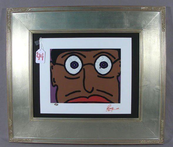 Original Serigraph on paper "Triple 000 Man Two". Hand signed Ringo and dated 2005. Publisher: Celebrity Art. Rare Limited Edition 3/100. Publishers Holographic seal, lower left. Image 14" x 17", Overall 26" x 29 1/2"