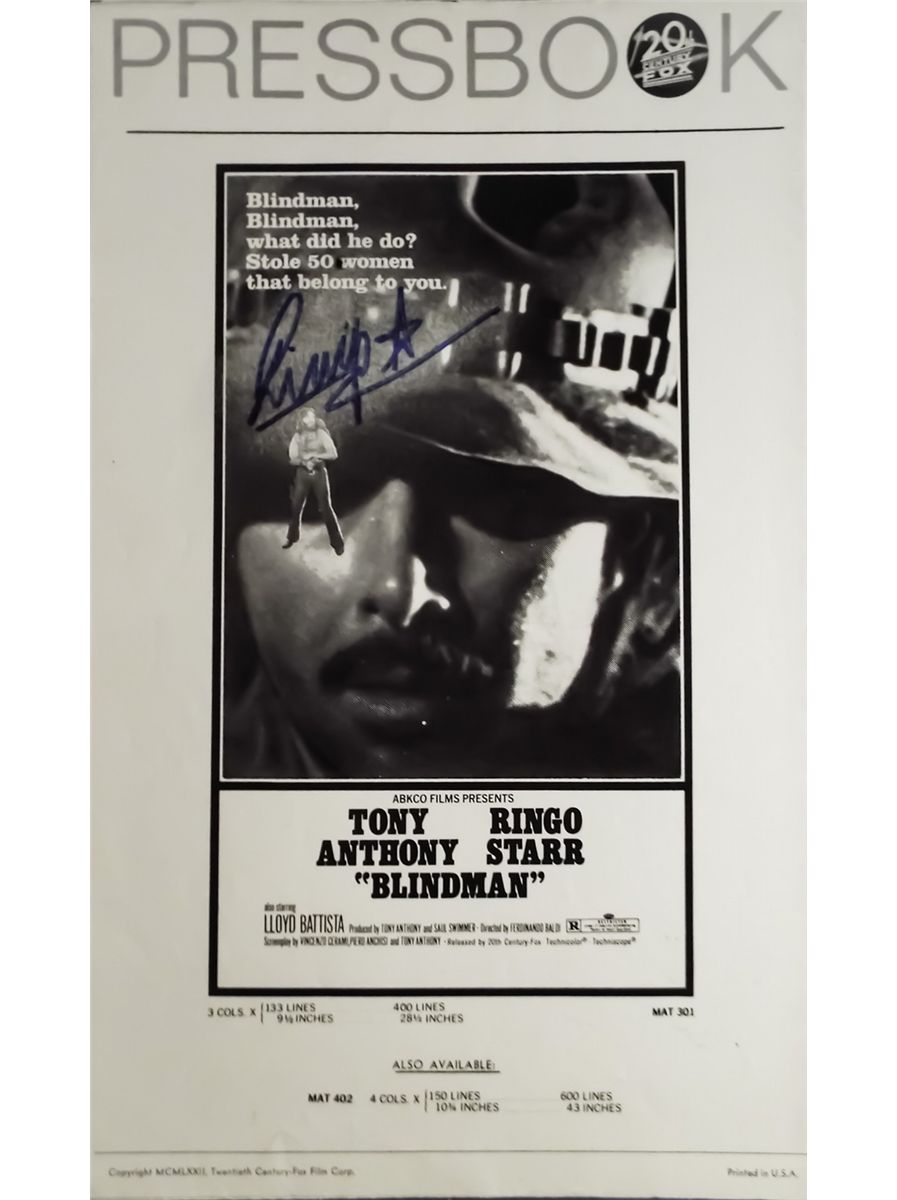 A Ringo Starr signed Blindman pressbook. Measuring 8x13 inches. Originally part of an RR auction.