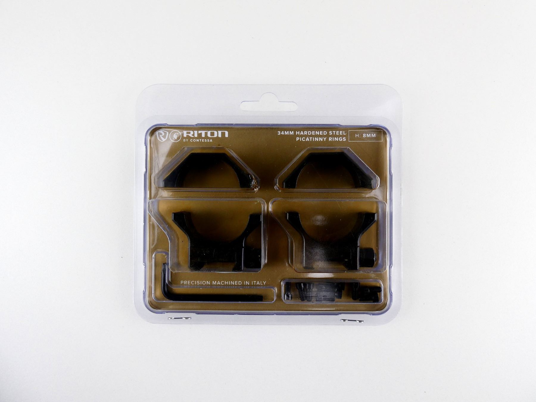 LOT INCLUDES; (1) PAIR OF 34MM PICATINNY RINGS, MATTE BLACK HARDENED STEEL, 8MM HEIGHT, PART #: XRC348S, NOS IN ORIGINAL PACKAGING. MAY REQUIRE FITTING. SEE PHOTOS.