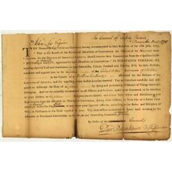 <b>525. DAVID RITTENHOUSE</b> (1732-1796) American astronomer and instrument maker and later director of the U.S. Mint. War-date partly-printed D.S. as Vice President of the Philadelphia Committee of Safety, 1p. oblong 4to., "<i>In Council of Safety Philad.</i>" Dec. 3, 1776, appointing John Lee as a Captain in <i>"...Colonel Potters' Battalion of Militia in the County of Northumberland...</i>". Vertical folds partially separated, one of which affects signature, margins bear minor chips, good condition.<b>$300-400</b>