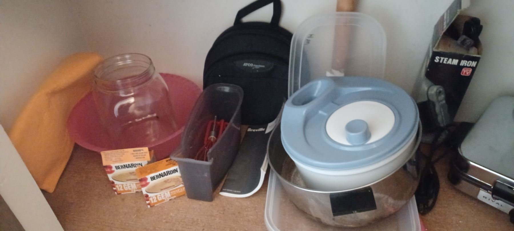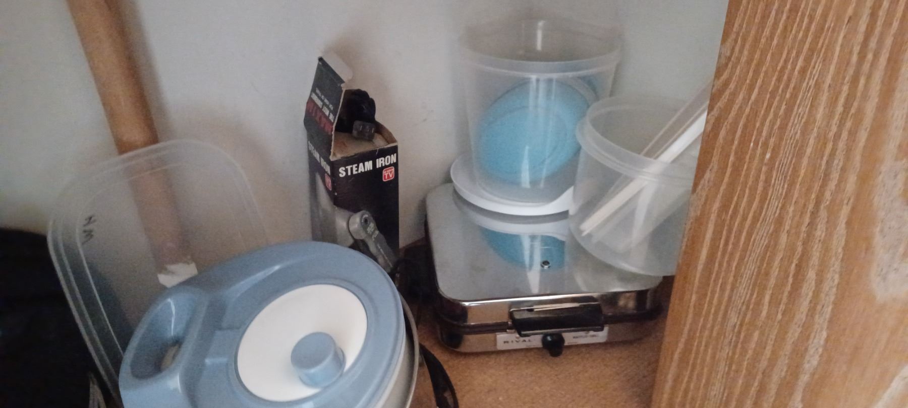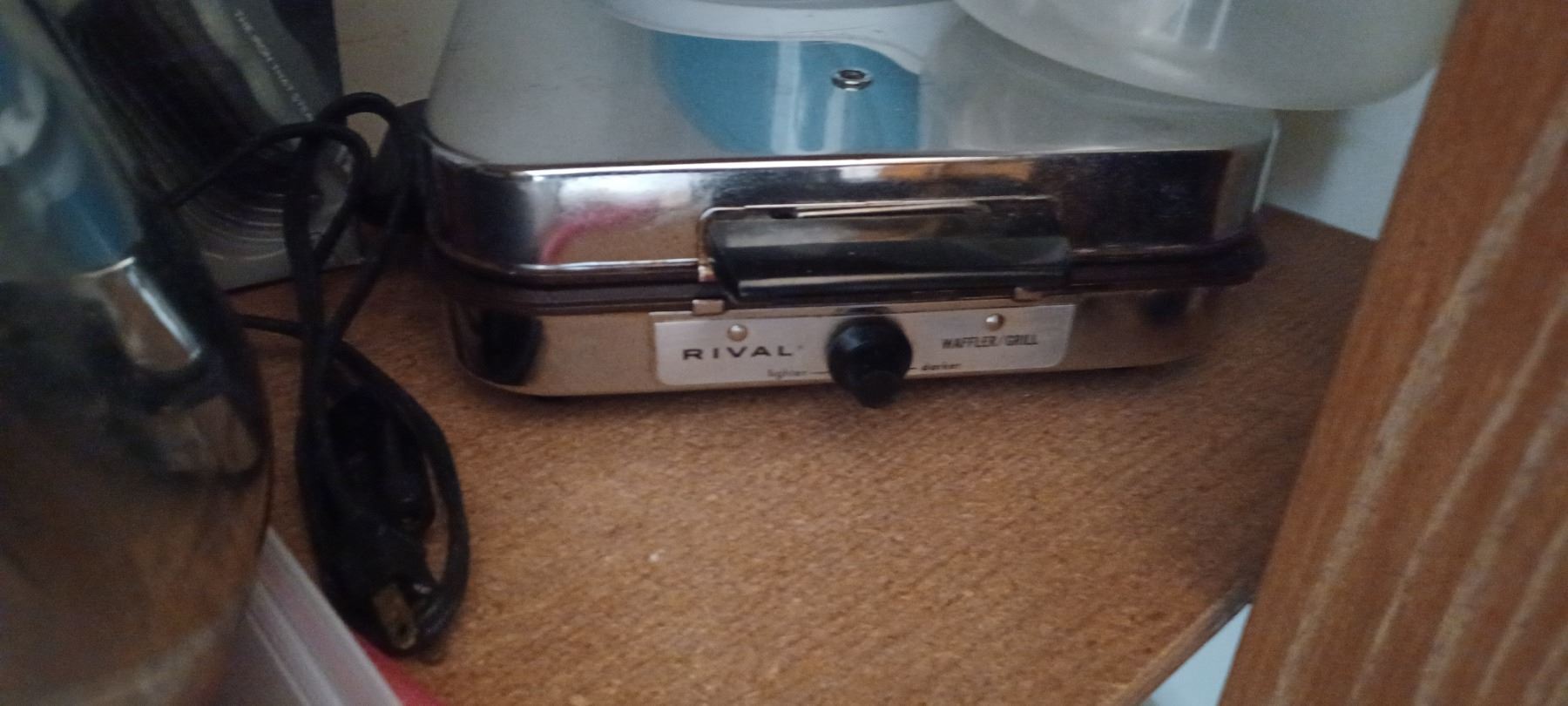 RIVAL WAFFLE IRON AND THIRD SHELF CONTENT