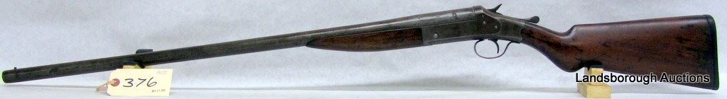 NON-RESTRICTED, SINGLE SHOT, 12GA, 30" BARREL WITH FIXED FULL CHOKE, SN NONE. WOOD SANDED DOWN WITH CRACK BEHIND RECEIVER AND LARGE CHIP, BLUING IS BROWN, BORE PITTED.