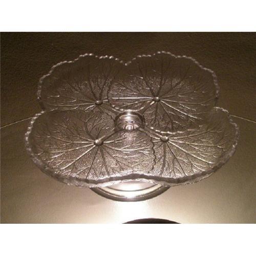 WE PRESENT TO YOU A STUNNING DESERT TRAY MADE BY THE RICHARDSON GLASS WORKS CO. IN C. 1890. SHOWING A SCALLOPED EDGE THATS ROLLED UP WITH A DETAILED CABBAGE LEAF PATTERN. SITTING ON A PEDESTAL BASE. A VERY RARE HARD TO FIND PATTERN. FLUORESCES APPLE GREEN WHEN BLACK LIGHT TESTED.