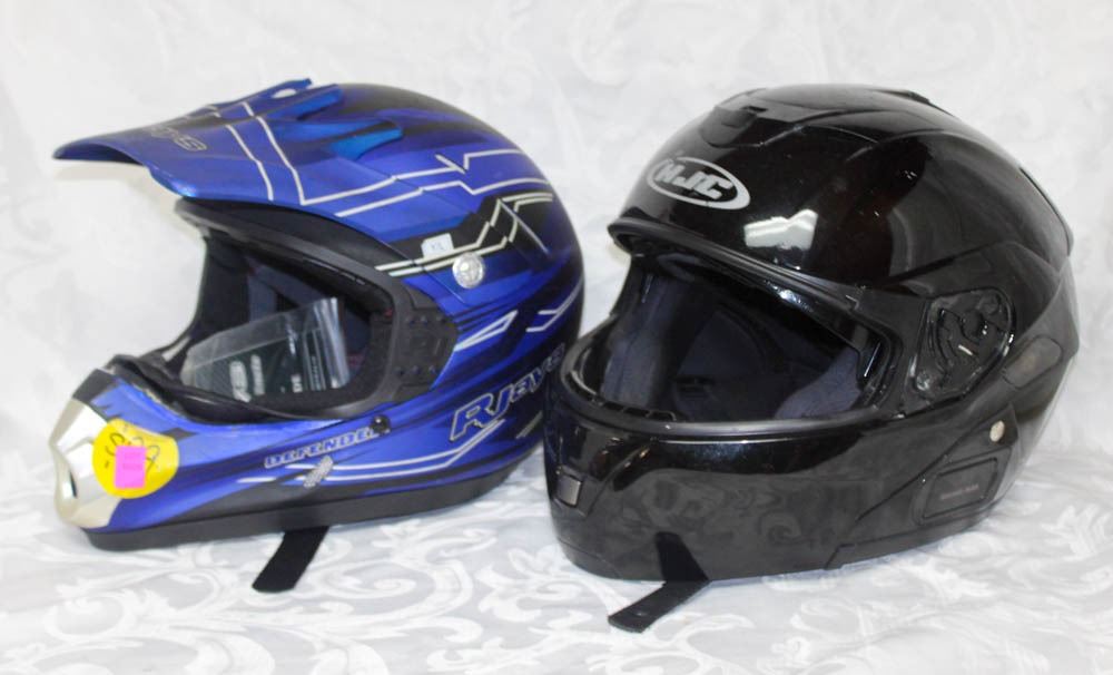 Y/L- BLUE/ SILVER & HJC MOTORCYCLE HELMET *AS IS* *** THIS AUCTION IS LOCATED @ 11813 95a St NW, Edmonton, AB.***