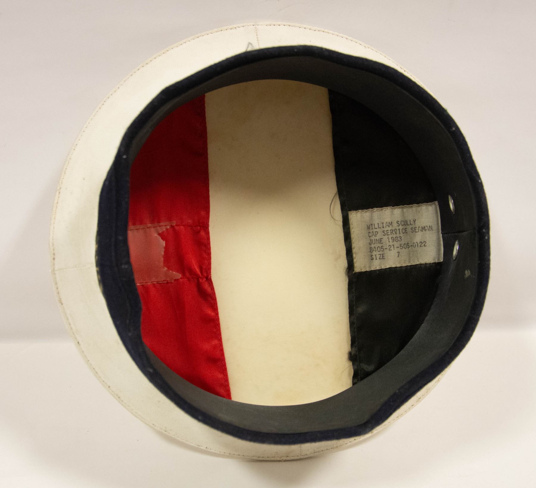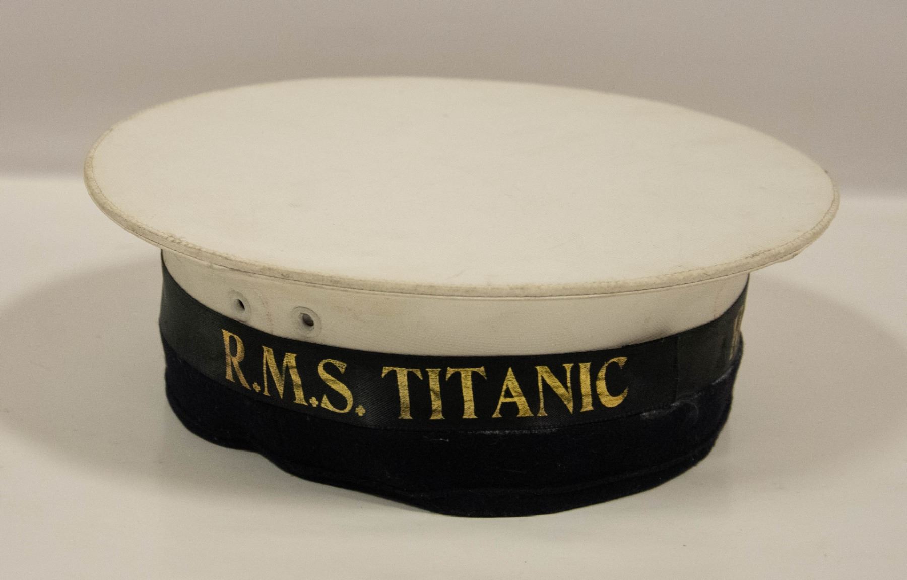 HEAD DRESS, SIZE 7, INNER LABEL INSIDE "WILLIAM SCULLY CAP SERVICE SEAMAN JUNE 1983" **NOT A GENUINE PIECE FROM TITANIC, WAS ARRANGED TO LOOK SIMILAR** **ALL ITEMS MUST BE REMOVED BY 5PM SATURDAY, MARCH 9TH 2024. ALL REMAINING ITEMS WILL BE SUBJECT TO A $6.00 PER DAY STORAGE CHARGE. ANY ITEMS REMAINING AFTER MONDAY, APRIL 1ST, 2023 WILL BE CONSIDERED FORFEITED. NO REFUNDS WILL BE ISSUED FOR FORFEITED ITEMS. TO SCHEDULE A PICK UP APPOINTMENT CLICK HERE