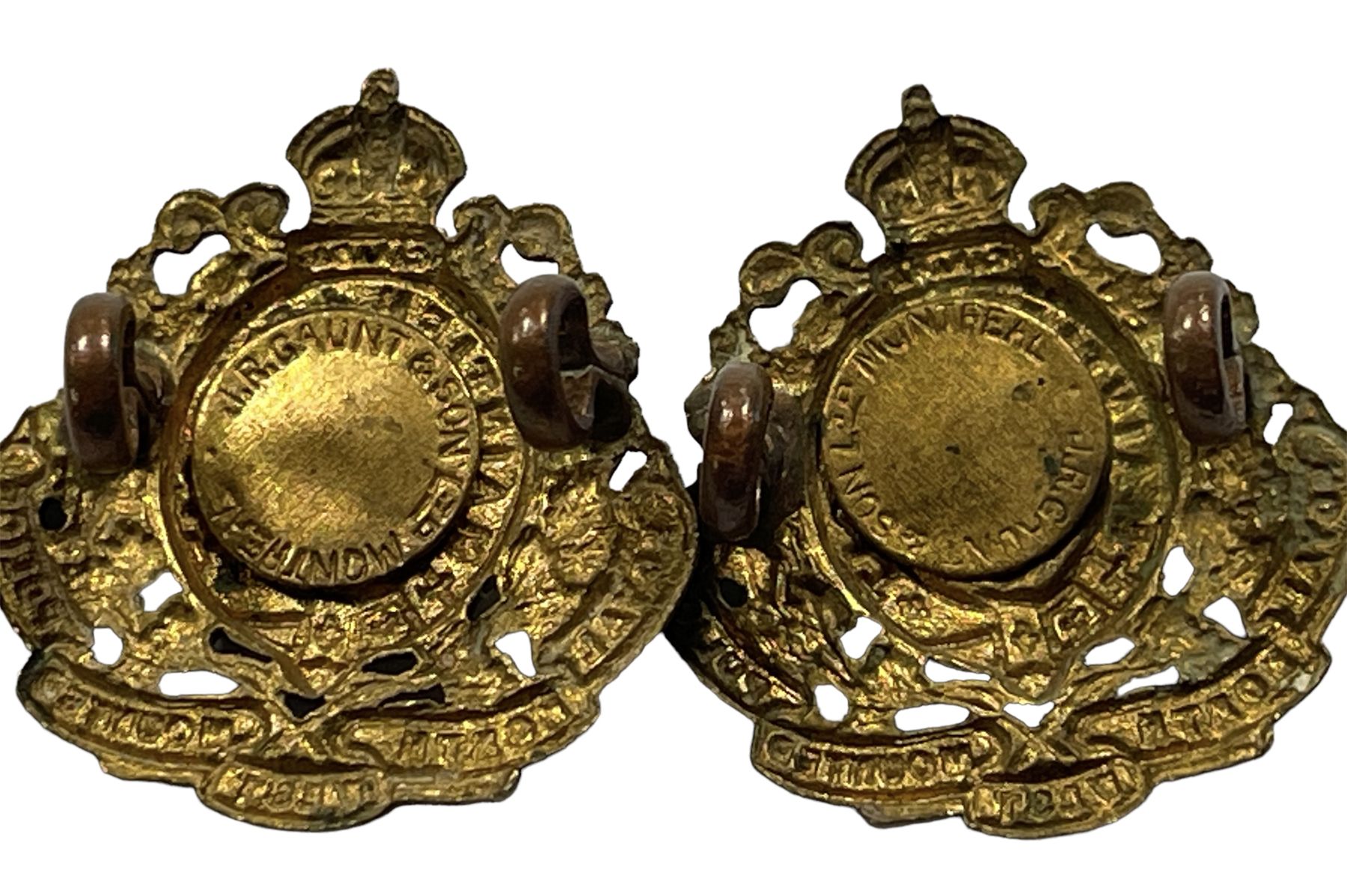 Age toned Brass metal, with lug fasteners. JR Gaunt makers disk on each. Excellent detail, matching polishing wear.