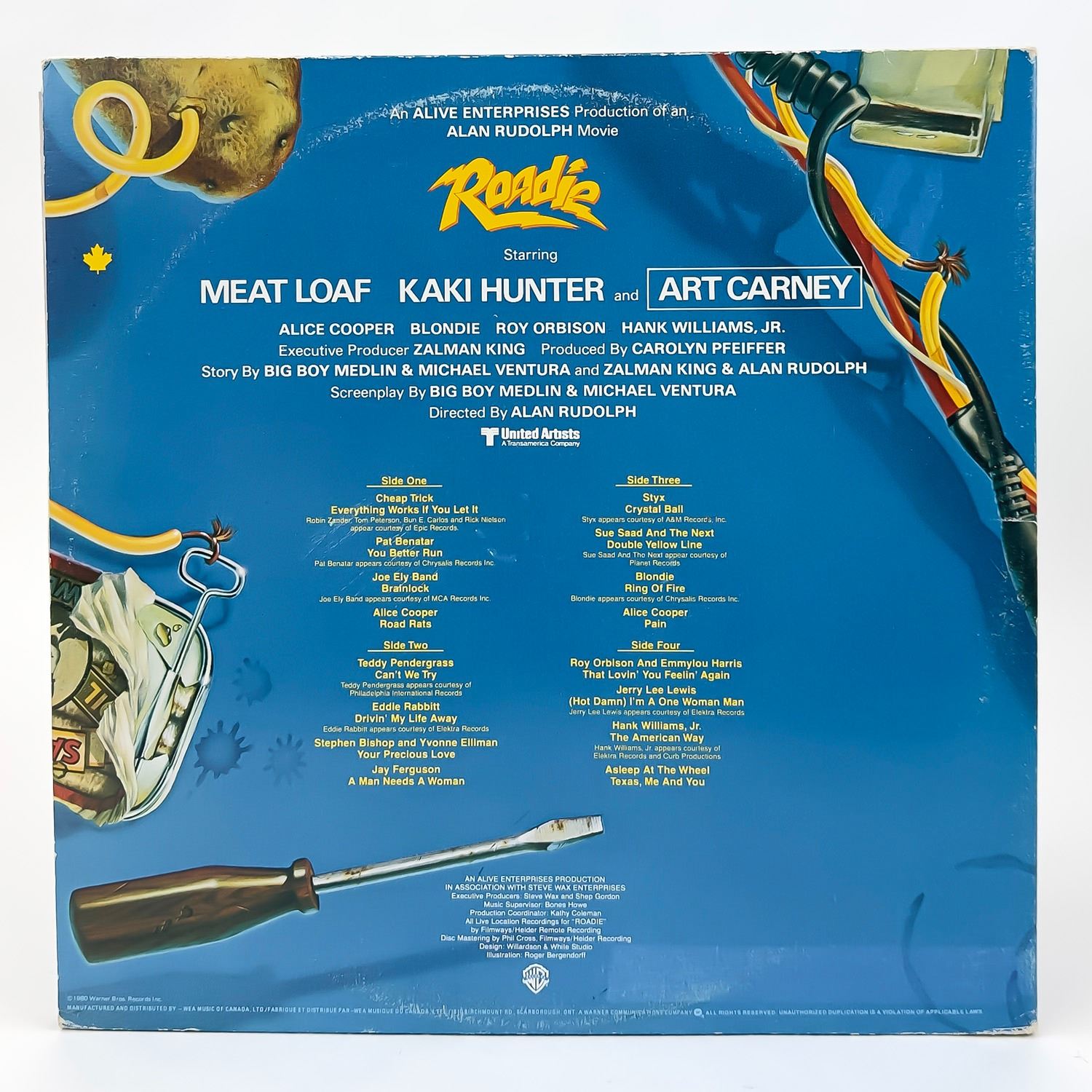 #8557 - 2X VINYL LP GATEFOLD RECORD ALBUM. ROADIE - STARRING MEAT LOAF, KAKI HUNTER AND ART CARNEY. ROCK, FOLK, WORLD & COUNTRY, ROCK & ROLL, HARD ROCK, POP ROCK, COUNTRY. CHEAP TRICK, PAT BENATAR, JOE ELY BAND, ALICE COOPER, EDDIE RABBIT, STEPHEN BISHOP AND YVONNE ELLIMAN, JAY FERGUSON, STYX, SUE SAAD AND THE NEXT, BLONDIE, ROY ORBISON AND EMMYLOU HARRIS, JERRY LEE LEWIS, HANK WILLIAMS JR., ASLEEP AT THE WHEEL.