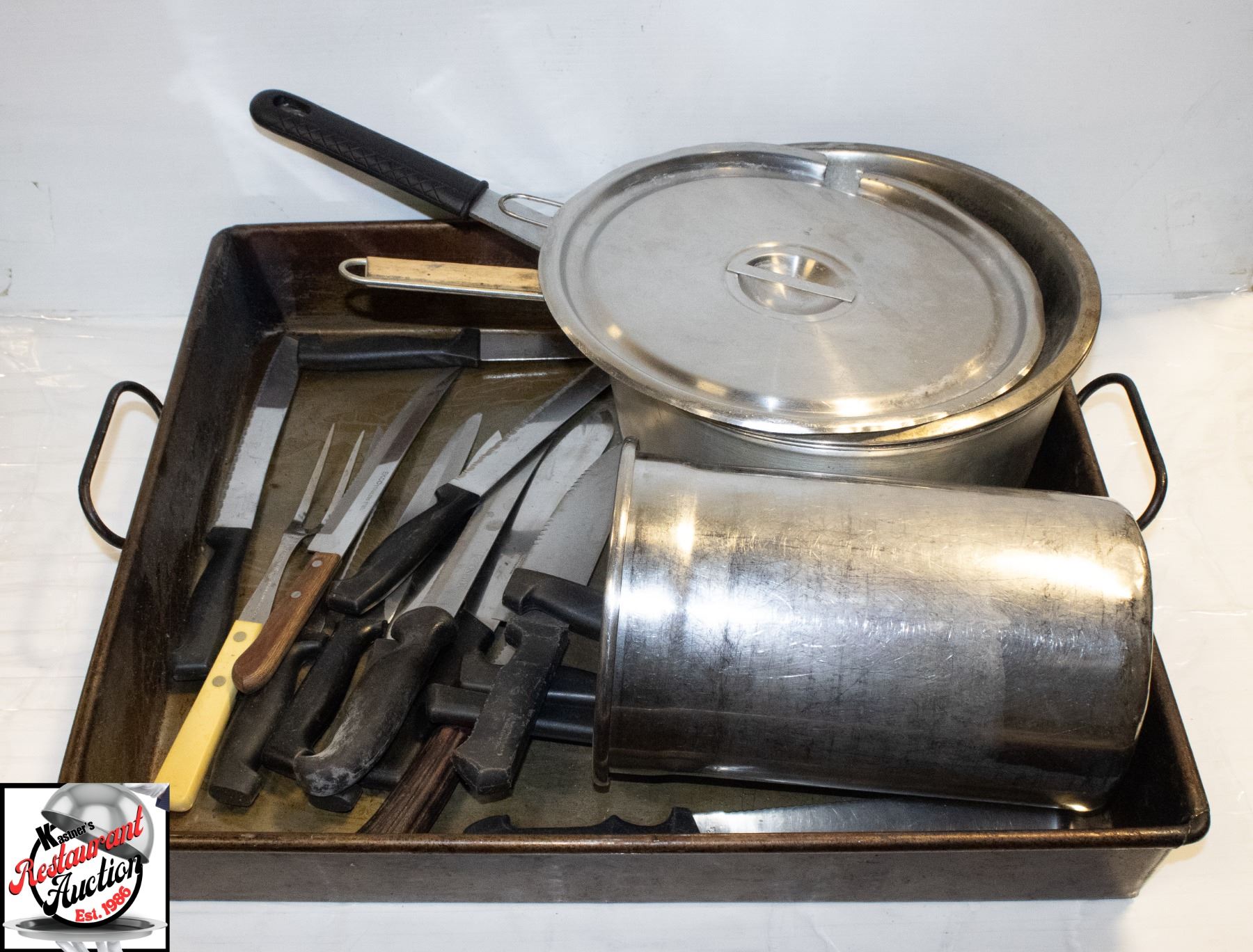 ROASTING PAN 19" X 21" WITH UTENSILS, POTS, BOWLS