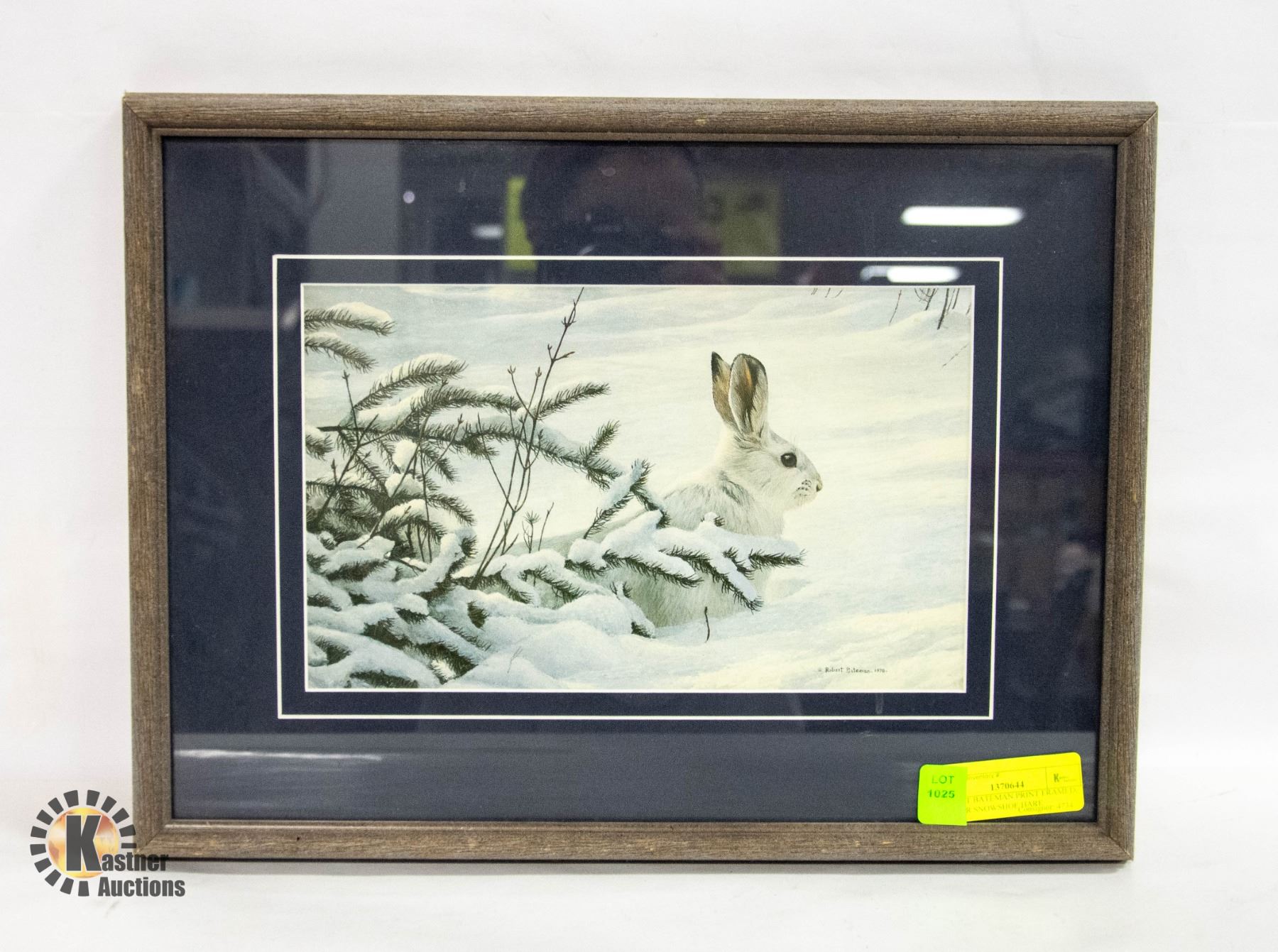ROBERT BATEMAN PRINT FRAMED, WINTER SNOWSHOE HARE