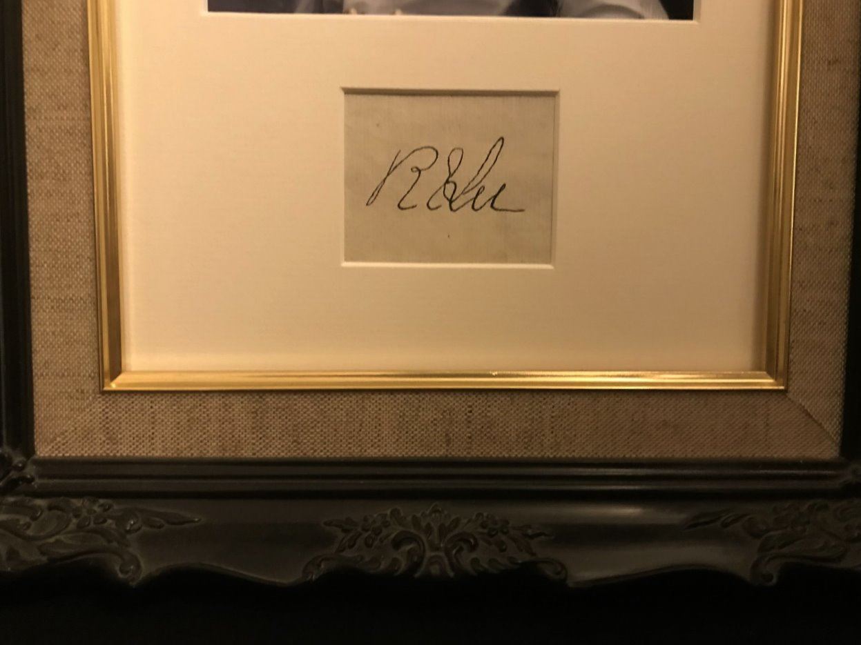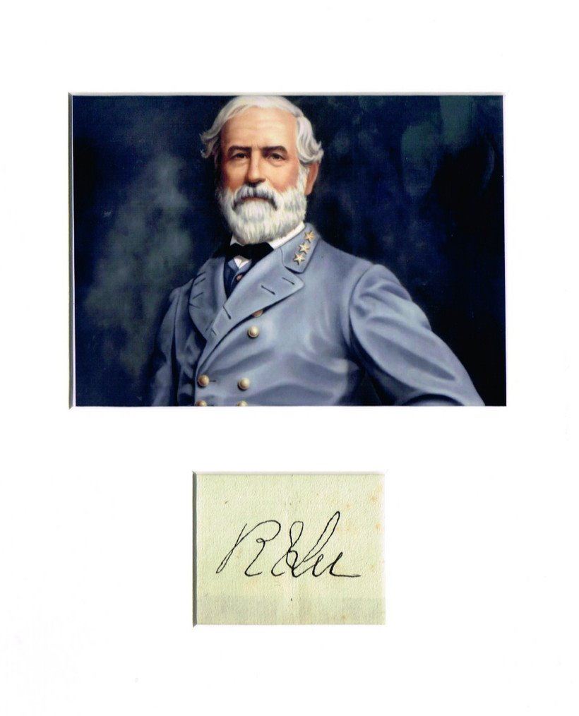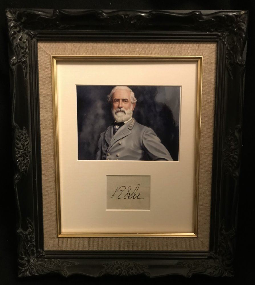 An autograph from Robert E Lee professionally mounted, framed in part wood and an antique style moulding. Supplied with coa. He was a Confederate soldier, best known as a commander of the Confederate States Army. He commanded the Army of Northern Virginia in the American Civil War from 1862 until his surrender in 1865.