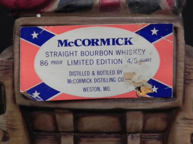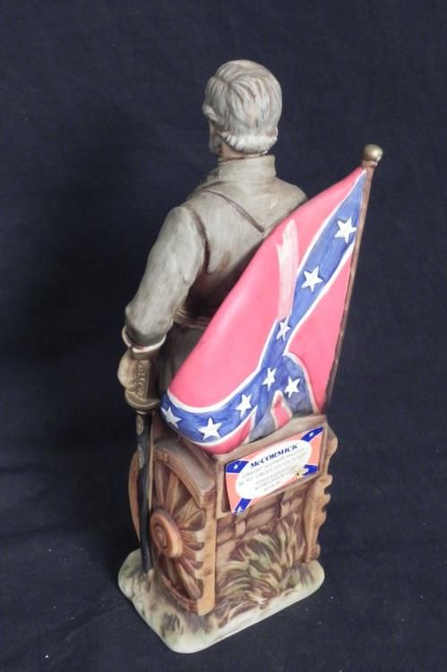 13" ROBERT E LEE CERAMIC VINTAGE McCORMICK WHISKEY DECANTER * * IN FULL UNIFORM WITH CONFEDERATE FLAG ON THE BACKSIDE