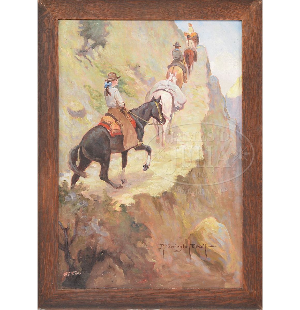 ROBERT FARRINGTON ELWELL (American, 1874-1962) FIGURES ON HORSEBACK ASCENDING A MOUNTAIN TRAIL