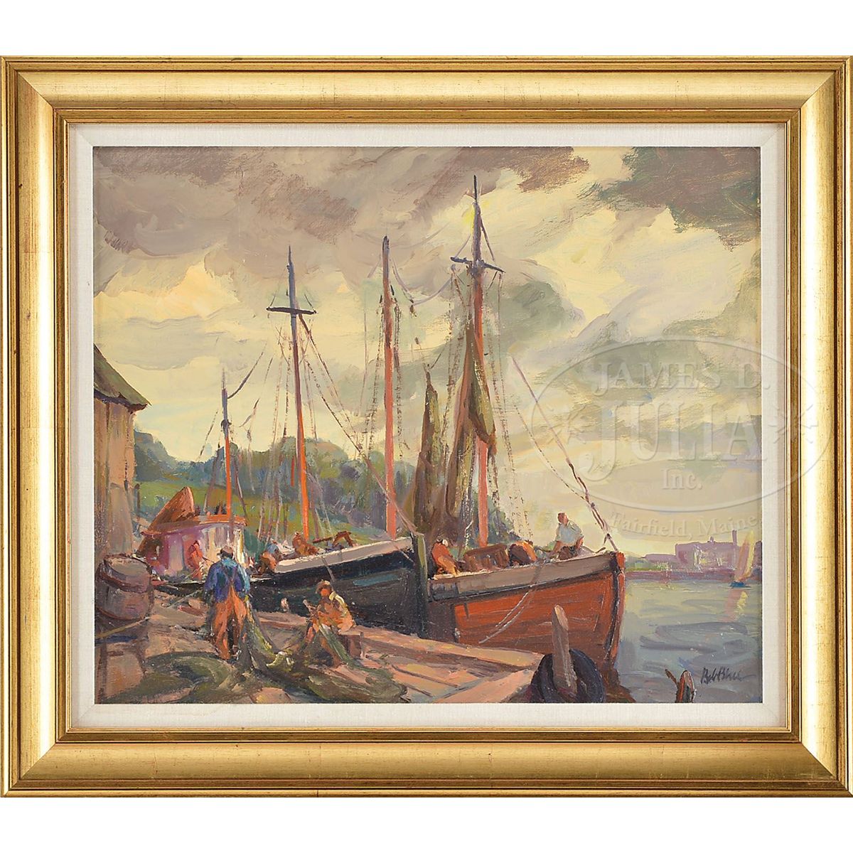 Oil on canvas Housed in a gilt wood frame with linen liner Signed "Bob Blue", lower right Note: Bob Blue lived in Rockport, MA and was a friend of Emile Gruppe and worked alongside him for many years SIZE: 20" x 24". Overall: 26-1/4" x 30-1/4" CONDITION: Very good 9-29779