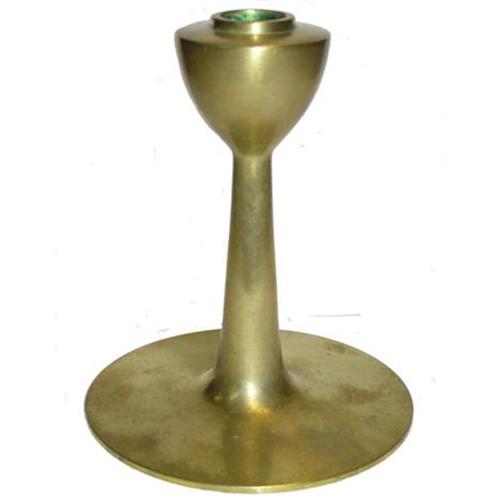 This is an original Lambda brass candlestick by the important American Arts & Crafts metalsmith, Robert Jarvie (1865-1941). Measures 5" across and 6" high and weighs 1 lbs. 7 ounces. Very good condition. There are no hallmarks. This item resides in our client's place in Larchmont NY in Westchester County and may be seen by appointment.