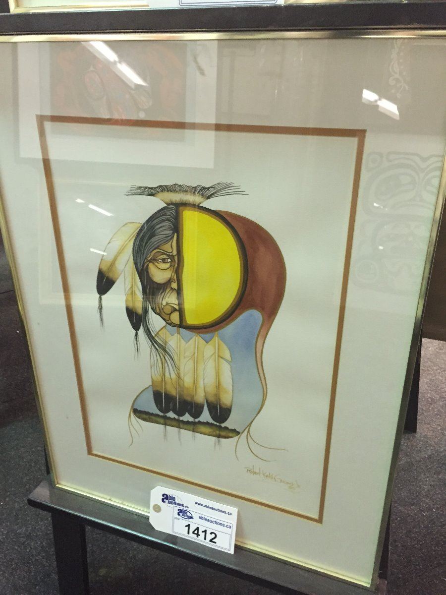 ROBERT KAKAYGEESICK JR. ACRYLIC AND WATERCOLOUR ON PAPER